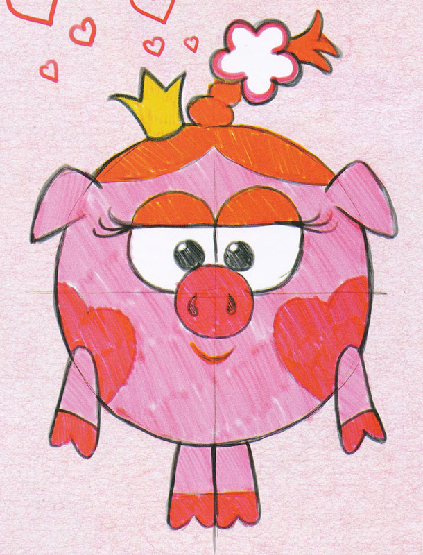 Пятачок наполнить синтепоном и вышить красной нитью ноздри.
